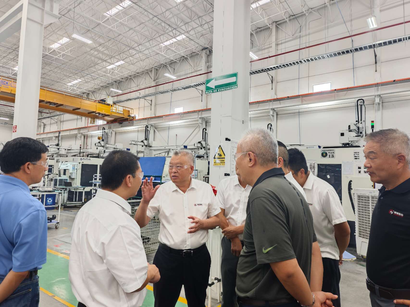 時隔五月,徐董事長再次踏入這片熱土。董事長一行抵達后,先后參觀了一號工廠和三號工廠。董事長及各領導深入車間,對墨西哥主要項目的量產運行情況、新項目的投產進展進行了全面了解,并對車間生產、項目管理等細節提出了關注。在聽取工廠當前面臨的困難與挑戰后,高層領導結合海外發展經驗,給予了針對性、指導性的意見與建議,為下一步工作指明了方向。