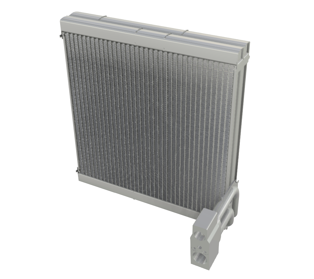 蒸發器位于HVAC內,在高溫天氣能快速冷卻乘員艙的溫度。制冷劑在蒸發器內發生相變,吸收通過蒸發器芯體外側的空氣熱量,并使其溫度低于環境空氣溫度,從而使車廂內的熱量和濕氣得到吸收。蒸發器表面進行清水涂層技術處理,使得蒸發器表面冷凝水更容易流出,而且能提高蒸發器的耐腐蝕、防霉抗菌能力,并且不容易產生異味。